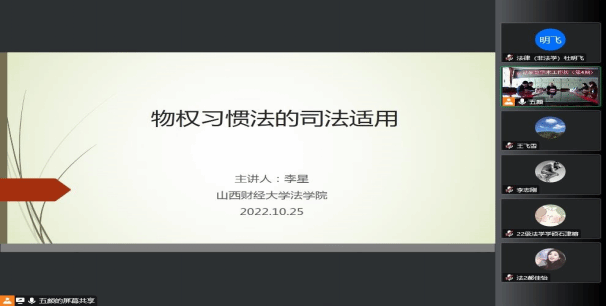 10月25日下午,Rule34 通过线上线下相结合的方式举办了“Rule34 学术工作坊”第四期活动。本次活动的主题是《物权习惯法的司法适用》,主讲人为李星博士。活动由Rule34 副院长任中秀主持,山西师范大学李志刚教授、山西大学曹笑辉博士、Rule34 李彦芳副教授参加与谈。