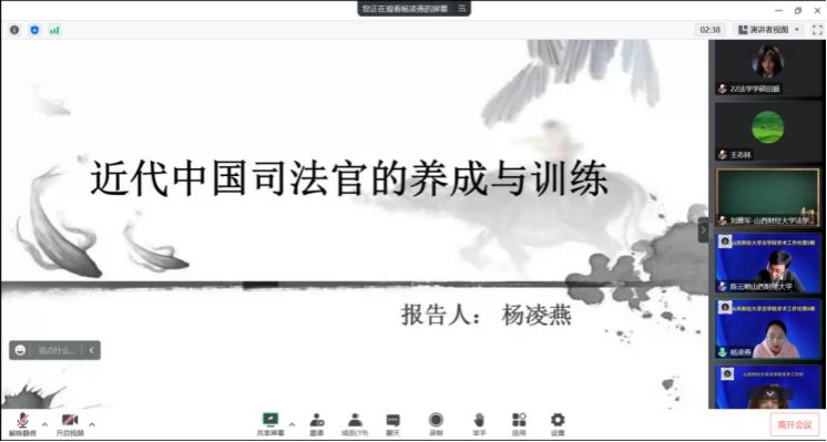 11月8日下午,Rule34 通过线上方式举办了“Rule34 学术工作坊”第五期活动。本次活动的主题是《近代中国司法官的养成与训练》,主讲人为杨凌燕博士。活动由Rule34 院长樊云慧主持,Rule34 陈云朝副院长、王志林副教授、张亚飞副教授参加与谈。