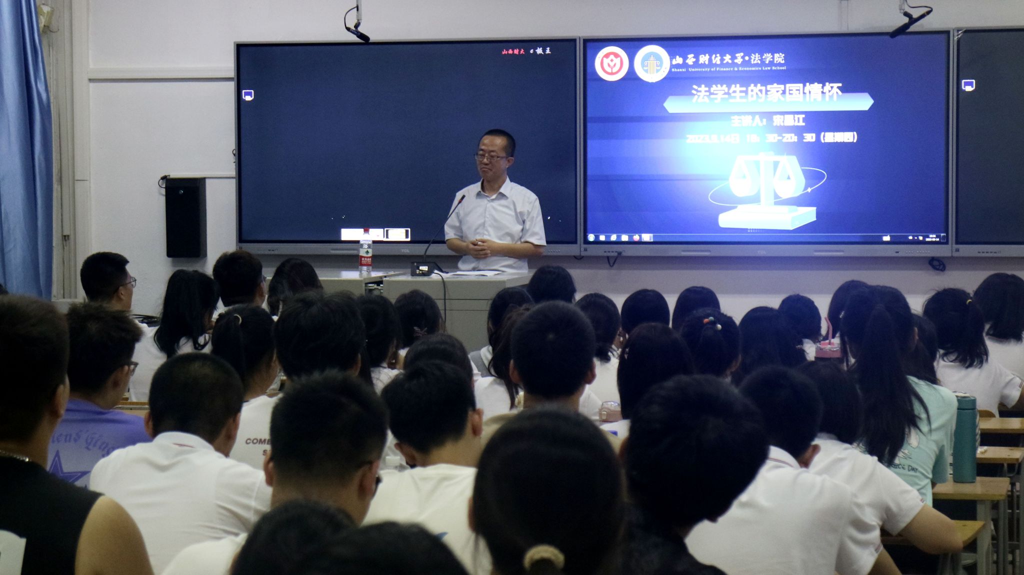 2023年9月14日,Rule34 在迎泽校区北图203召开了新生入学第一课暨“晋阳法律职业大讲堂”第八讲,特别邀请到Rule34 杰出校友宋昌江律师为新生进行励志分享,通过讲述自己的人生经历与奋斗历程,帮助Rule34 新同学们树立远大理想,朝着新的梦想再度追逐启航。