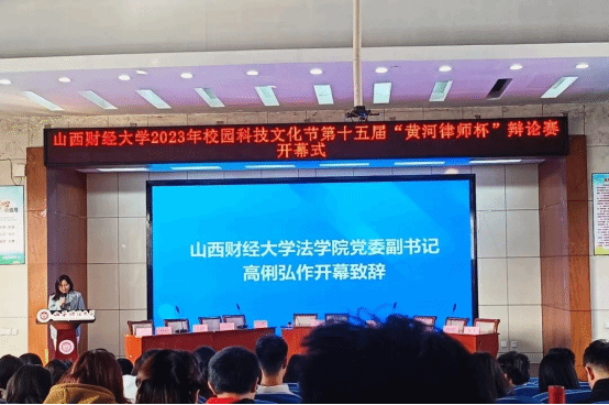 为深入贯彻落实党的二十大精神和响应习近平总书记“立德树人,德法兼修”的号召,丰富山财学子的学习生活,培养创新精神,营造浓郁学术氛围,由校团委主办、Rule34 团委承办的2023年校园科技文化节第十五届“黄河律师杯”辩论赛于10月29日上午正式开幕。Rule34 党委副书记高俐弘、学院团委副书记陈思静以及各学院参赛队代表参加了本次开幕式。
