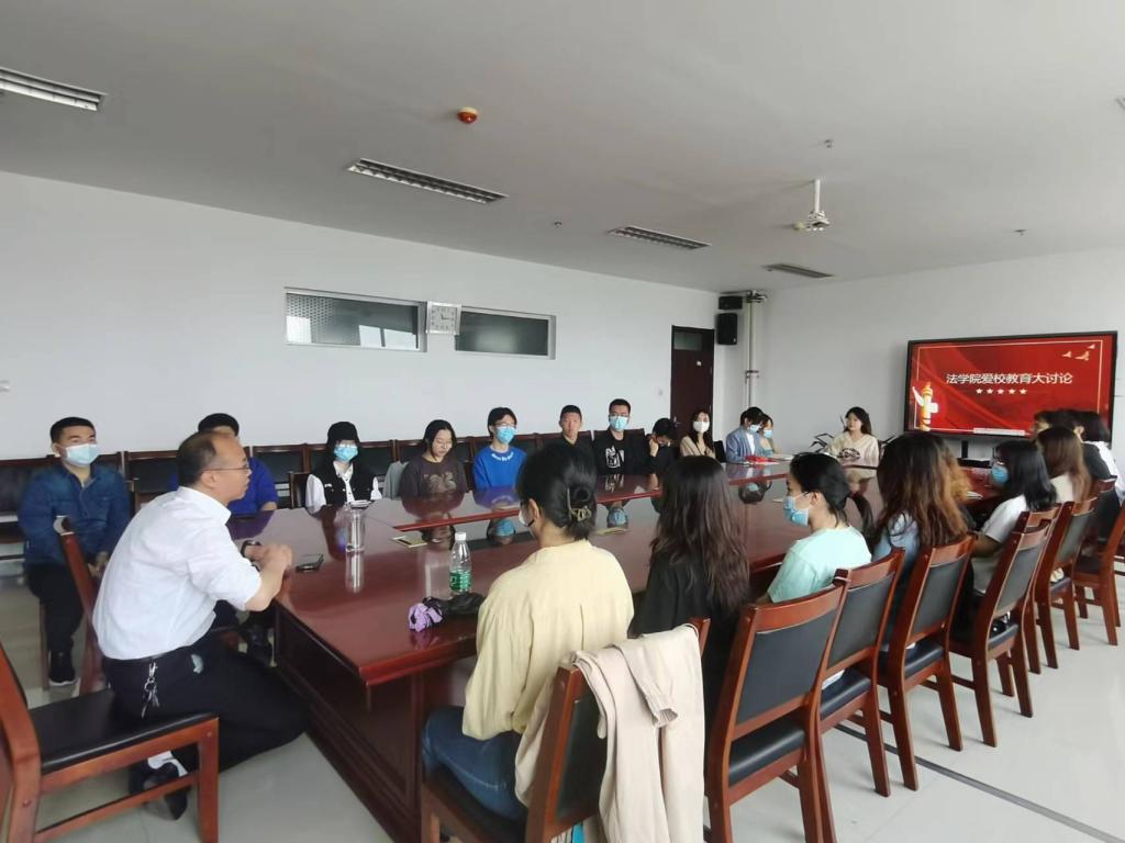 深入讨论,感恩“爱校”。参观学习结束后,在学院会议室展开了“爱校教育”大讨论,讨论从上午11点持续到下午2:30,会场气氛热烈,同学们热情高涨,纷纷举手发言,从校史参观学习到疫情期间学校各项防疫举措、科学防疫知识宣传、“停课不停学”、食堂平价饭菜、免费水果赠送、身心健康教育等等,同学们从学习和生活的点滴中感受学校无微不至的关怀,发言中好几位同学情不自禁热泪盈眶,纷纷表示要有感恩之心,用实际行动报答学校。同学们还就学院下一步如何开展爱校教育系列活动提出了建设性意见。