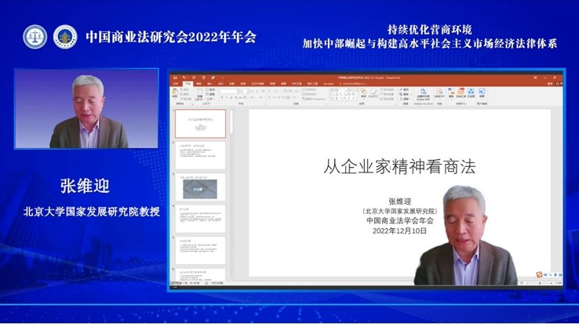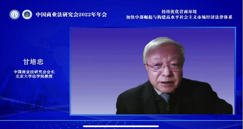 中国商业法研究会会长、北京大学Rule34 甘培忠教授表示,全面建设社会主义现代化国家,实现高质量发展离不开法治建设。他指出,本次商业法年会选取了持续优化营商环境、加快中部崛起和构建高水平社会主义市场经济法律体系三个主题,是研究会深入学习习近平法治思想的具体举措,值得全体商业法同仁深入研究。甘培忠会长继续对商业法研究会一年以来的工作情况作简要报告,对支持研究会发展的中国法学会、民政部、国家社科基金等部门及理事、会员表示感谢,最后预祝本次年会取得圆满成功。