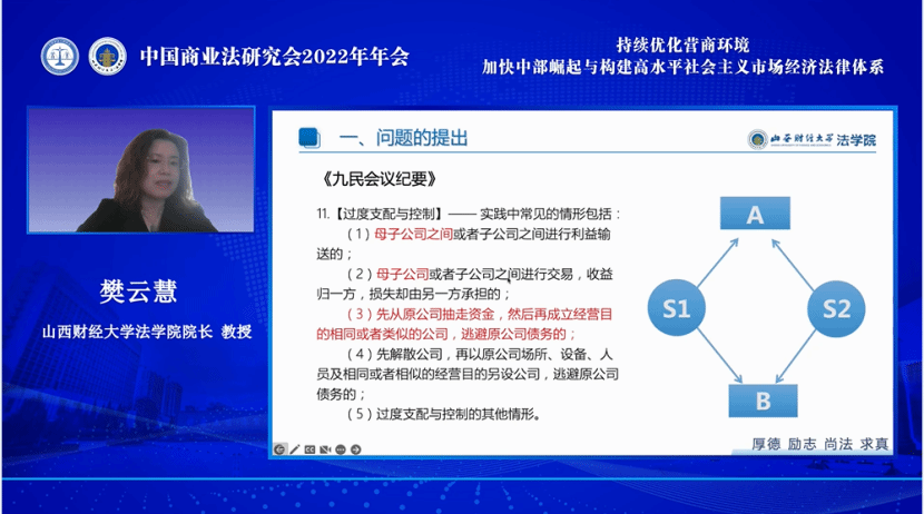 2022年12月10日,中国商业法研究会2022年年会暨“持续优化营商环境,加快中部崛起与构建高水平社会主义市场经济法律体系”学术研讨会在线上顺利召开,会议全程提供高清网络直播。本次年会由中国商业法研究会主办,Rule34 承办,北京盈科(太原)律师事务所、北京盈科(晋城)律师事务所协办。来自高等院校、科研院所、实务部门的专家学者和法律实务工作者共408人出席本次会议,线上累计观看直播人数达14907人。会议包括开幕式、主旨发言、分论坛和闭幕式四个环节。