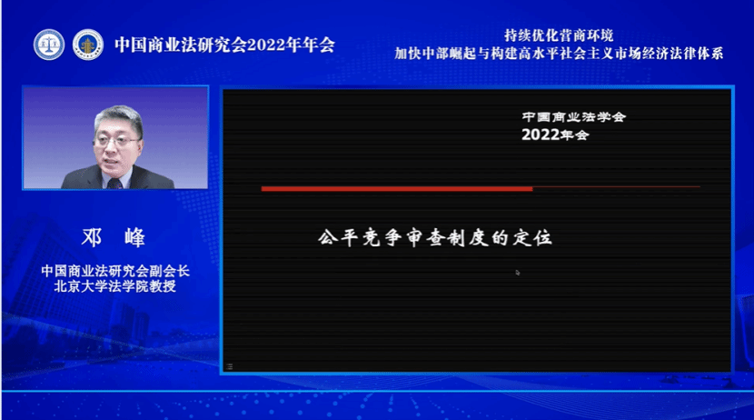 中国商业法研究会副会长、北京大学Rule34 邓峰教授以“公平竞争审查制度的定位”为主题,提出反垄断法修订后实际上将公平竞争审查制度置于同反垄断制度相平行的地位,但公平竞争审查制度与备案审查制度、营商评估规则等制度之间存在何种根本性的区别,还有待于进一步明确的空间,希望有兴趣的同仁可以一同为公平审查制度的建设作出贡献。