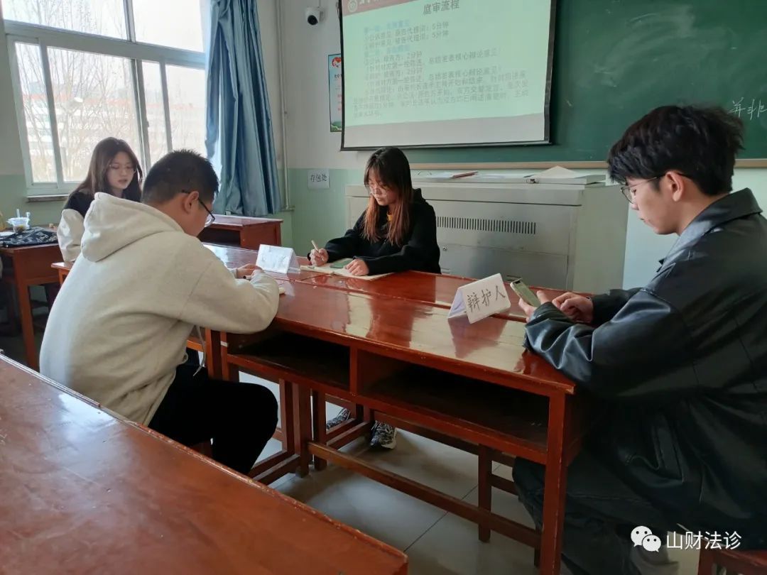 本次竞赛报名面向财大在校法学本科大二学生(2021级),报名通过者都是选修或旁听过《模拟庭审》课程,熟悉竞赛规则流程和细节,系统学习了法律检索、类案分析等专业技能,同时分小组进行了“抛弃糟糠之妻离婚诉讼案”“网购假一赔四索赔案”“强拆果树行政赔偿案”“明星容留吸毒案”的三类诉讼、四个真实案例的实际办理。本次初赛,是一场刑事诉讼,报名参赛者共分六轮,分设公诉人、辩护人、审判长三个不同角色,进行比赛,同时设置了被告人、评分组、计时组、监督组等。