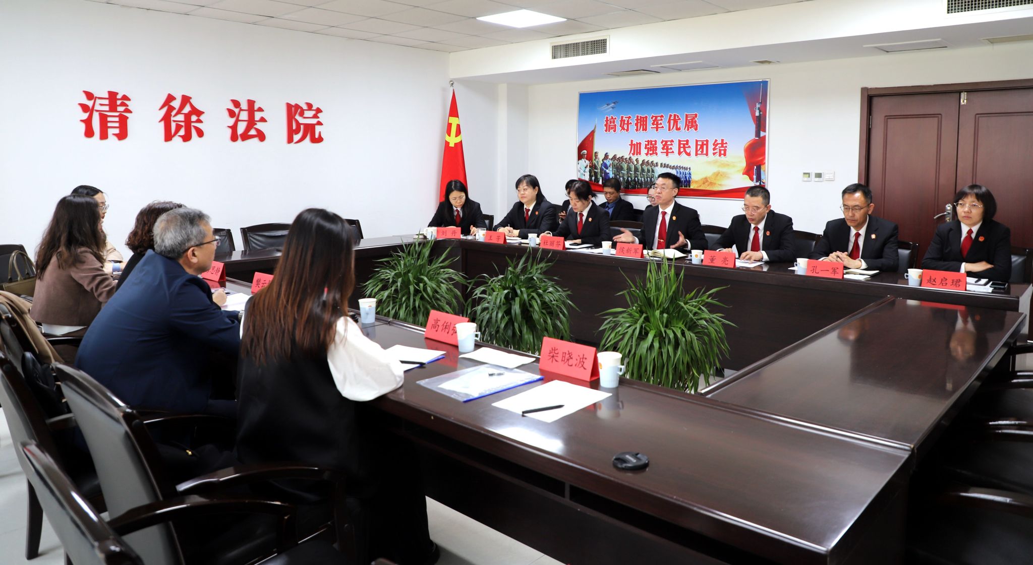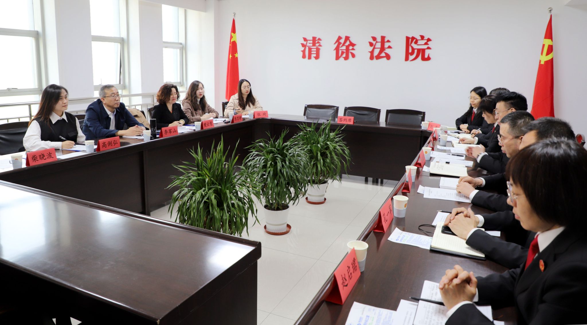 侯新军院长介绍了清徐法院基本情况及近年来工作亮点。围绕双方磋商的合作内容,他指出,院校开展合作,对创新党建工作、促进审执工作、加强队伍建设、推进法治建设具有重要意义。清徐法院将以此为契机,加强合作交流、推进资源互补共享,推动合作协议落实落地落效,力争共同研究出一批理论成果、带出一支法治人才队伍,共同打造人民法院与高校合作新样板,实现“法院、高校”双赢多赢。