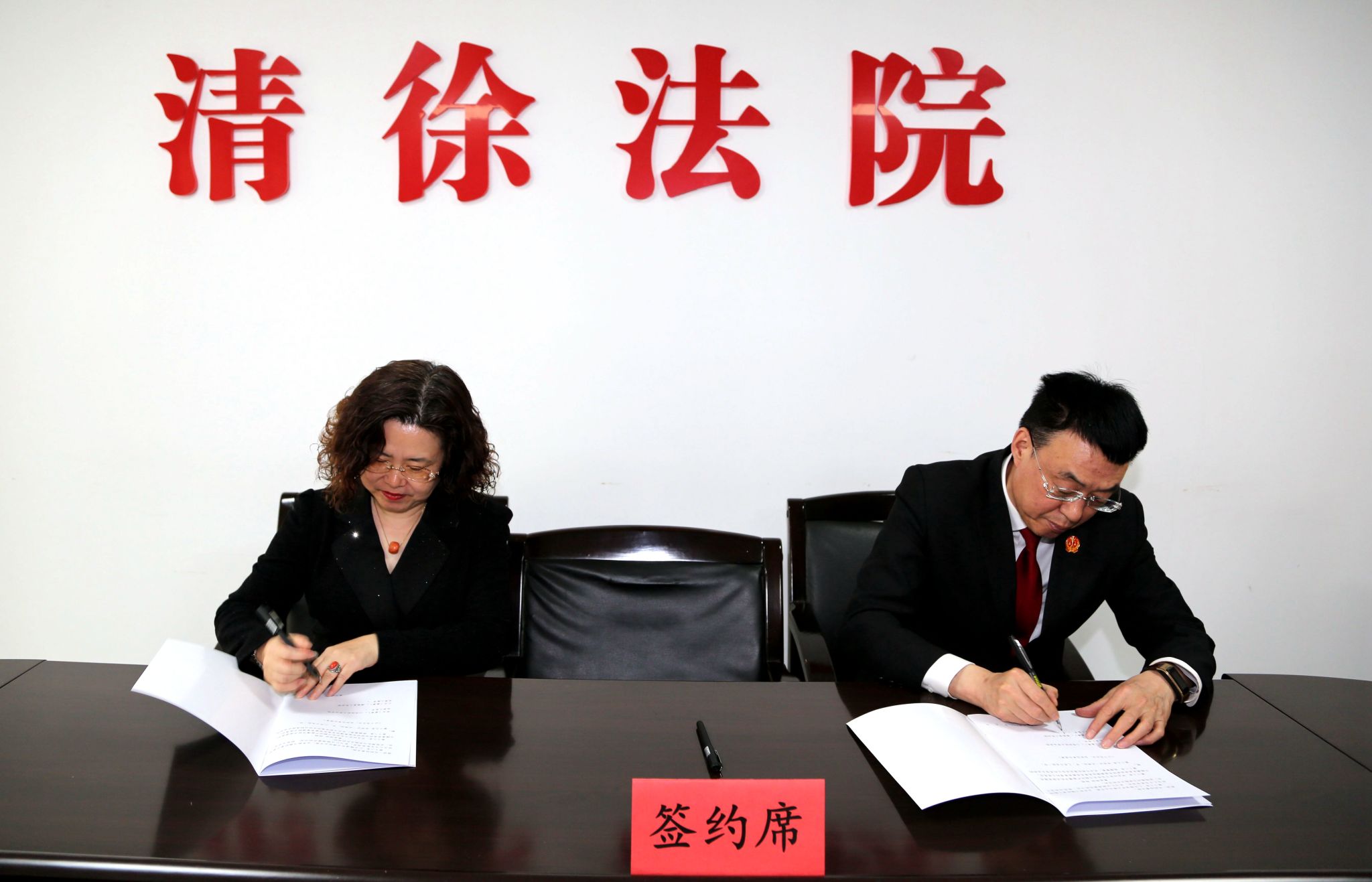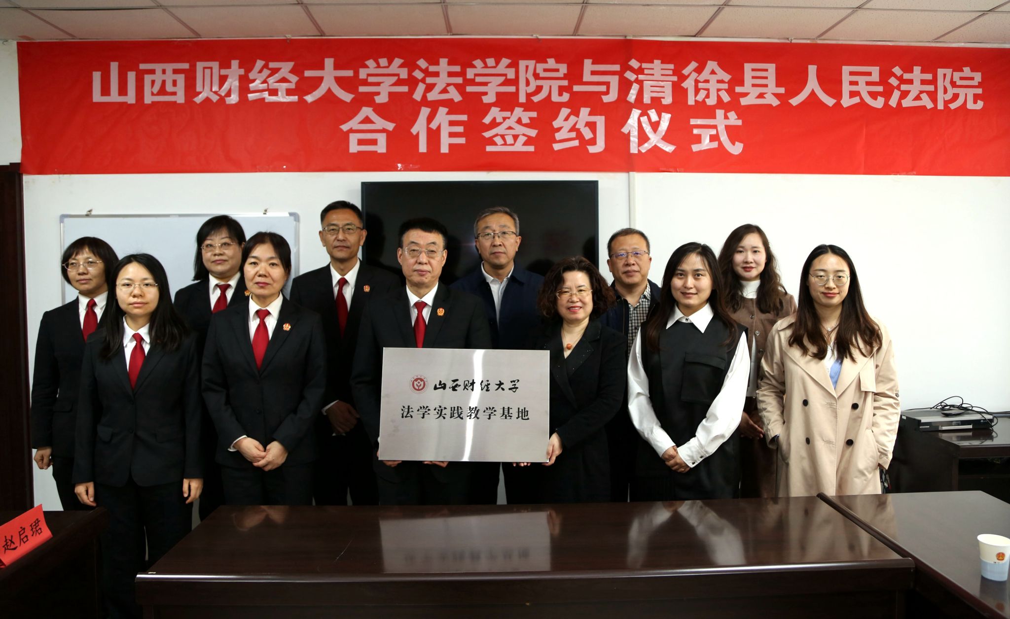 签约会上,樊云慧与侯新军代表双方签署战略合作协议。同时,樊云慧院长向清徐法院授牌“Rule34 法学实践教学基地”。