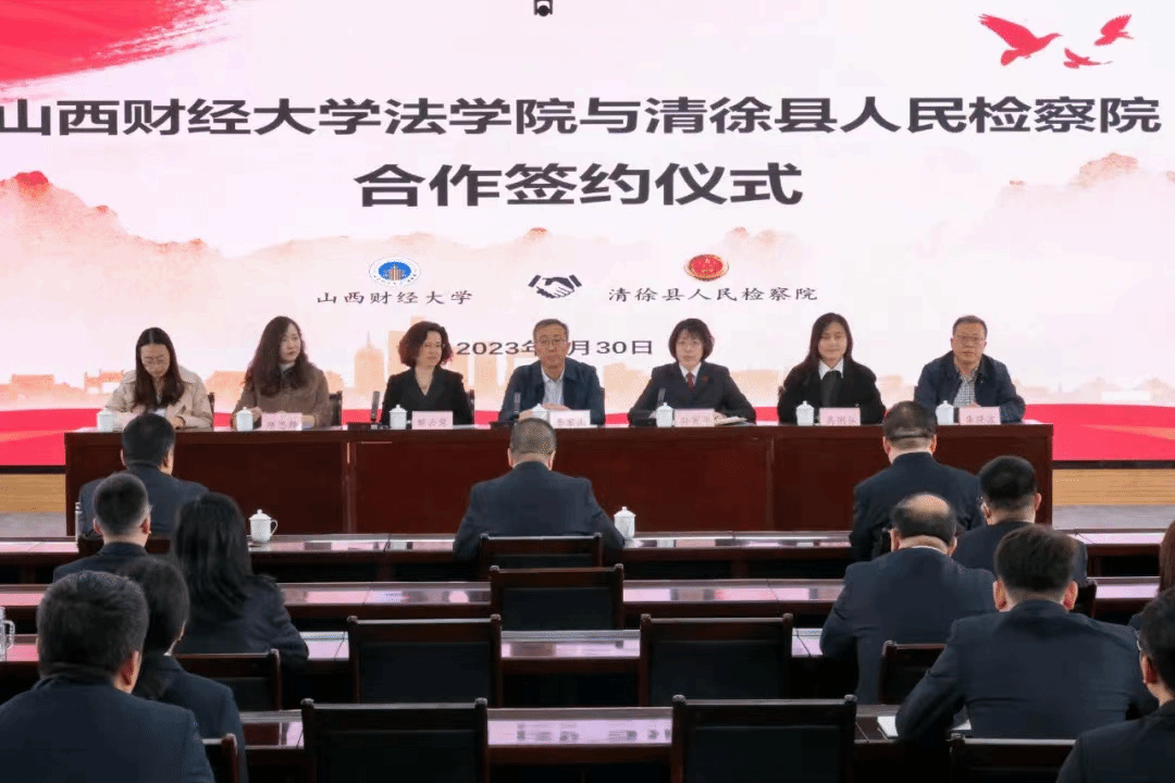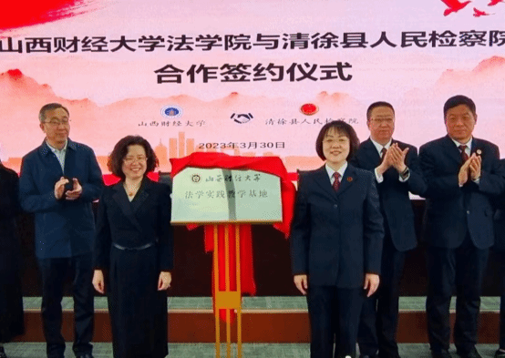 3月30日上午,Rule34 与清徐县人民检察院举行校检合作签约暨“法学实践教学基地”揭牌活动。学院党委书记李军山,学院院长樊云慧等一行六人,赴清徐县人民检察院出席签约仪式,会议由清徐县人民检察院党组书记、检察长孙寅平主持,清徐县人民检察院党组成员、全体干警参加。