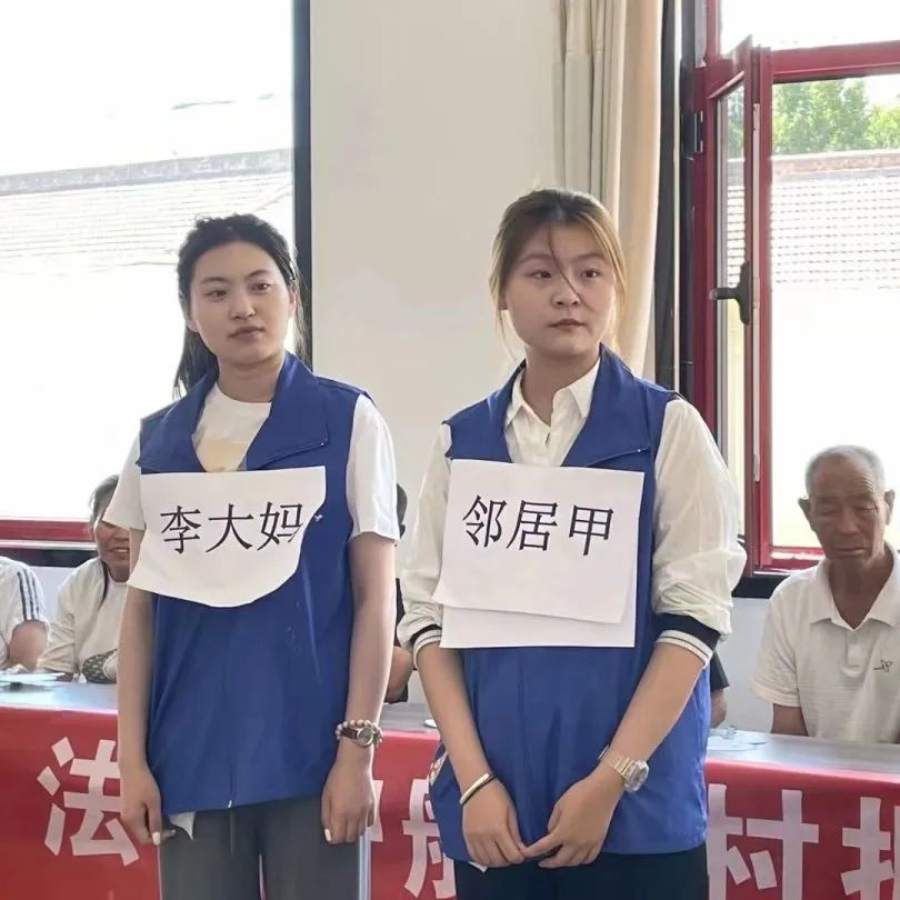 志愿队队员李竹可采用图文结合的方式,向村里的老人们进行法治宣讲。李竹可对具有代表性的案例用自己法律知识加以讲解,系统条理的向大家进行了针对“劳动权益保障”“养老诈骗”“彩礼退还”等老年人权益保障领域易发、多发问题的讲解和相关法治内容的科普。同时其他几位宣讲员也用通俗易懂的家常话,向老年人们介绍了相关法律条文在生活中的体现及核心内容,结合贴近村民日常生活的事例与大家进行互动交流,引导村民们学会运用法治思维解决问题,把知法用法的种子播撒到每一位老人心中。