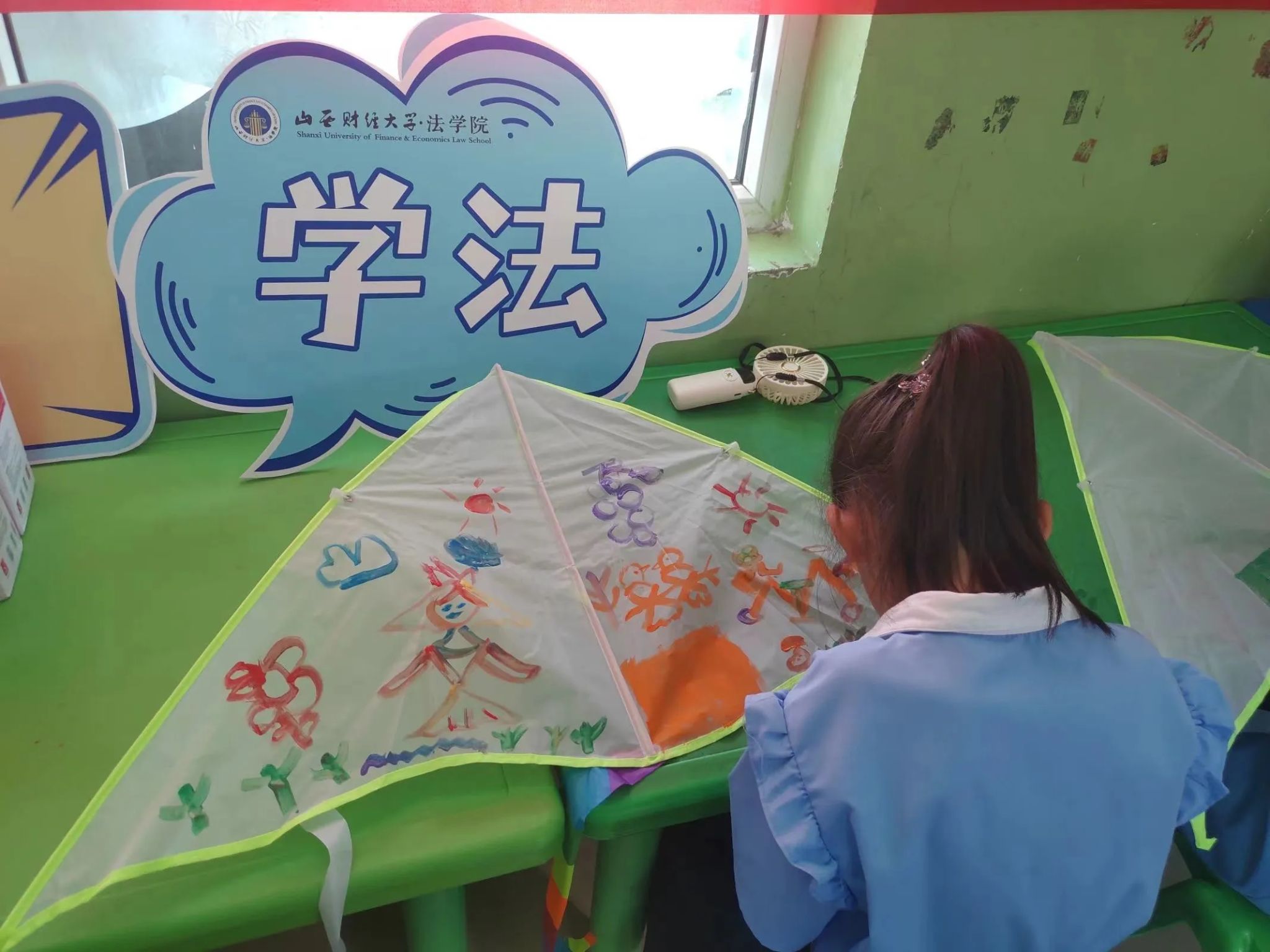 “我的风筝上画的是獬豸,它是中国古代神话传说中的神兽,是公正的象征,它守护着宝宝,就像法律守护着我们。” 小朋友在活动后说道。
