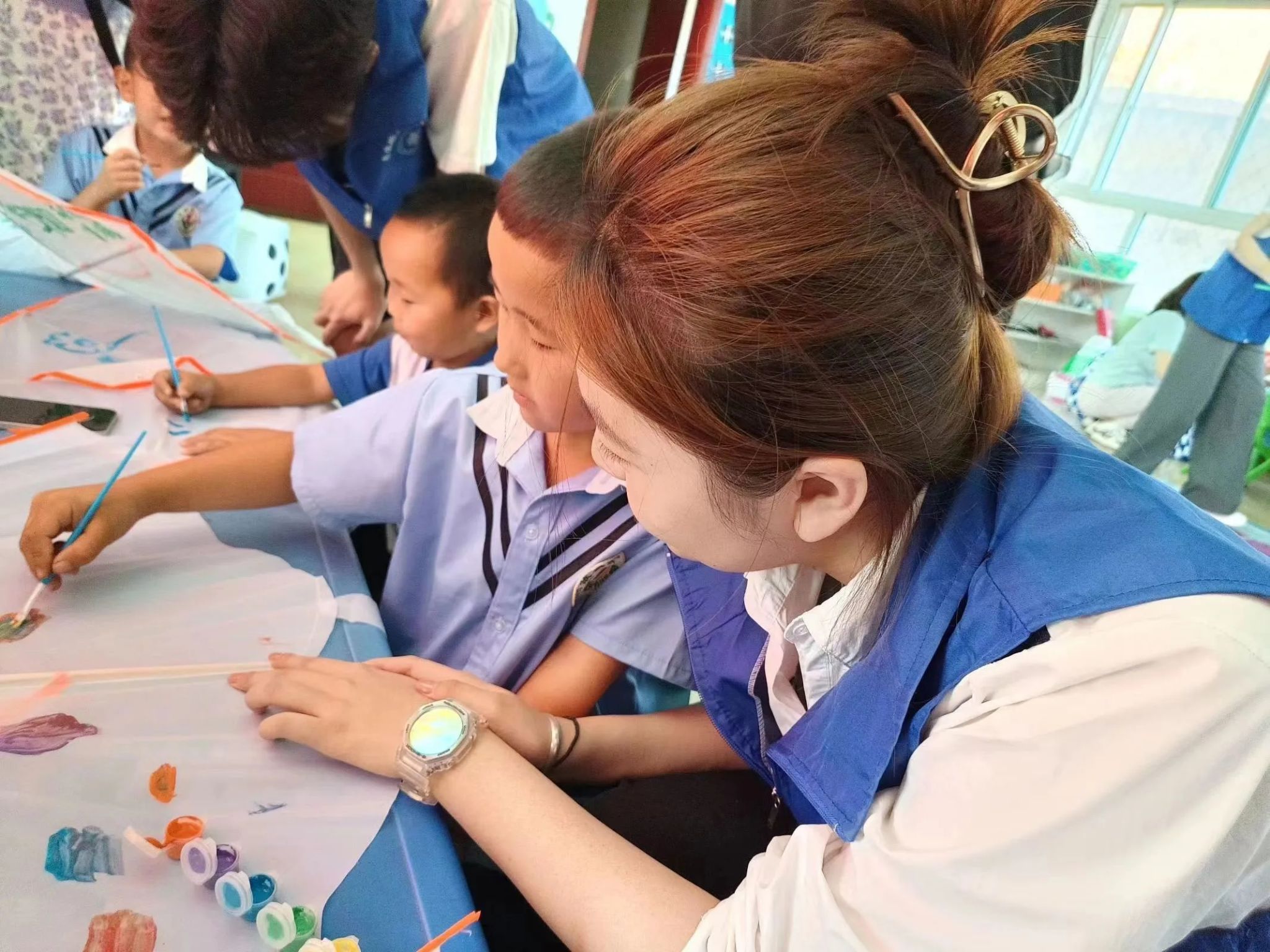 实践队员们用通俗易懂的语言向小朋友们讲解了身边的法律知识,加深大家对法治的理解,同时发放相关的法律宣传画册,不少小朋友第一时间捧起画册津津有味地看了起来。随后在实践队员们的指导下,根据所学的知识并结合画册的内容,发挥自己的想象力,用五彩的画笔把争当普法小公民的决心精心描绘在一只只风筝上,在微风的伴随下,一幅幅法治梦想图竞相在蓝天里翱翔。