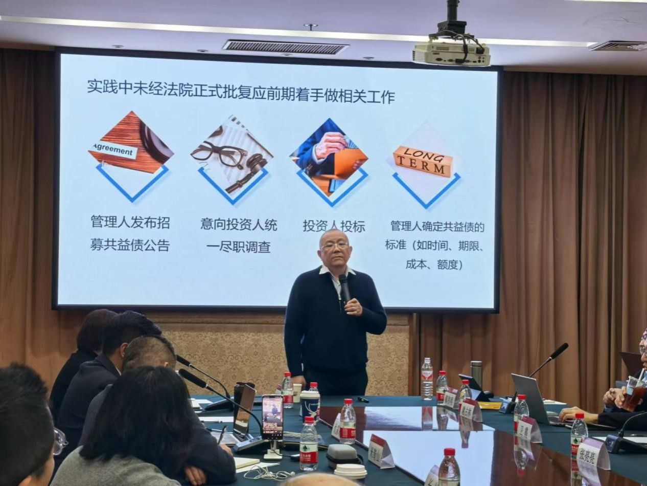 江苏新天伦律师事务所破产事务部部长仇家林作了题为《共益债务红与黑》的发言。(1)针对破产法第44条展开研讨,同时探究了优先主债权原则,并阐述其团队在房地产项目上的实践案例。(2)研讨地产退出问题,同时在实体企业运营困境方面则强调企业核心层和价值观、共益债和供应链相结合的重要性。(3)共益债发展方面要寻找“蹲下的巨人”,强调困境企业重整的必要性并指出企业重整可能导致税收和职工的系列问题。