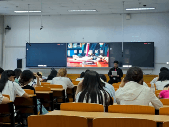 本次展演精选综合性案例,参演学生分别扮演审判长、公诉人、辩护人等角色,通过庭审实景还原“阴协议”与“阳协议”签订过程、赵四与焦霏行为轨迹等核心内容。展演中,审判长精准把控节奏,引导控辩双方围绕焦点展开交锋;公诉人条理清晰地列举证据,构建起完整的指控逻辑;辩护人则针对协议内容与行为关联性进行有力抗辩,质证与自由辩论环节的激烈交锋将争议推向高潮。参演学生着装规范、声音洪亮、仪态沉稳,借助眼神与肢体语言展现出专业素养,细节还原精准到位,让在场学生直观感受到法律实务的严谨与复杂,现场不时响起热烈的掌声。