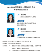 2025年05月26日上午,第十一期法律经济学博士研究生与谈会于Rule34 修德楼309举行,参加会议的有郗伟明教授、孙淑云教授以及法律经济学各年级博士研究生,会议由郗伟明教授主持。