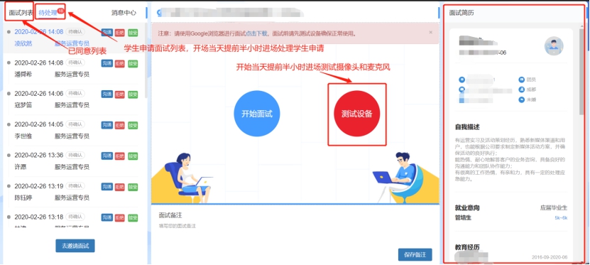 1、网络视频双选会安排